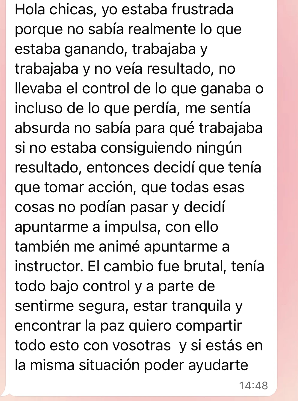 Crecerás profesionalmente y ayudarás a todas aquellas que quieren empezar o perfeccionar dentro del sector.